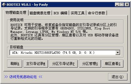 中了目前最流行的mbr后即使你重装系统后病毒依然会复活。因为病毒存放在磁盘的引导扇区中。本工具可以重写引导扇区。 还有很多功能,支持命令执行是做启动盘的好东西噢。