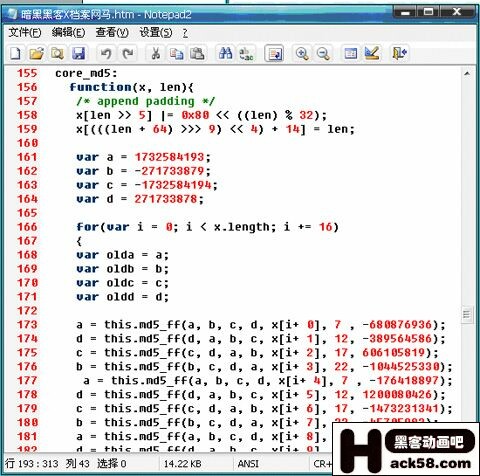 接下来就来看一个有貌似点难度的了。最近黑客防线出的《黑暗网马》使用了火狐里一个人出的加密工具。解密过程需要提供密码,难道是为了防止修改?看起来有点类似md5加密,难道真的不可逆?1K的网马可以加密到15K甚至更大,太可怕了吧?让我们一起来把他解密出来吧!
