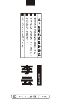 字体的运用:我们有很多字体,在应用字体的时候,应该协调整个内容,相临体形的字体给人感觉整体化,有时候为了突出某一点,会采用与其完全不一的字体,运用字体时候在于灵活,这里要说明一点的是每个字,我们的中文字有很大的讲究,同一种字体,应用在不同的字上面,效果不一!所以在采用字体的时候特别要注意,你觉得这种字体好看但运用在不同的字上面,却并不一定好看!采用的时候应该根据自身的特点来选择相应的字体,这好比很多人看到的名片好看,套用自己的信息上去时却发现不好看了,这是一个道理,所以模版只能作为学习,而不能死套!套上去也不好看,因为你的主体标志形状,信息项的不同都会影响整个布局!
