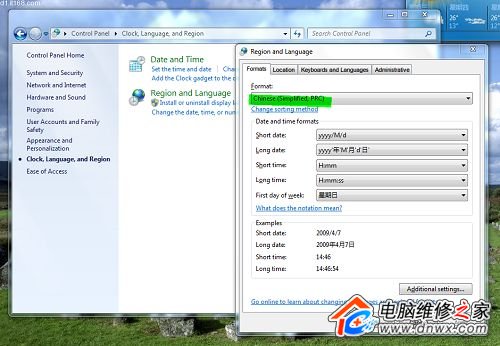 第一步打开控制面板,选择Clock,Language,and Region(时钟、语言和区域),第二步选择Region and Language,在新弹出的窗口中,Formats标签中,选择Chinese(Simplified,PRC)。在Location标签卡中,Current Location下拉框中选择China。在最后一个Administrative,最下面的选项里选择 Chinese(Simplified,PRC),这样我们的设置就结束了。