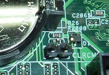 BIOS跳线一般在主板的锂电池附近,其默认位置一般为1、2短路,只要将其改跳为2、3短路几秒种即可解决问题,对于以前的老主板如若找不到该跳线,只要将电池取下再按上亦可达到清除BIOS之目的。