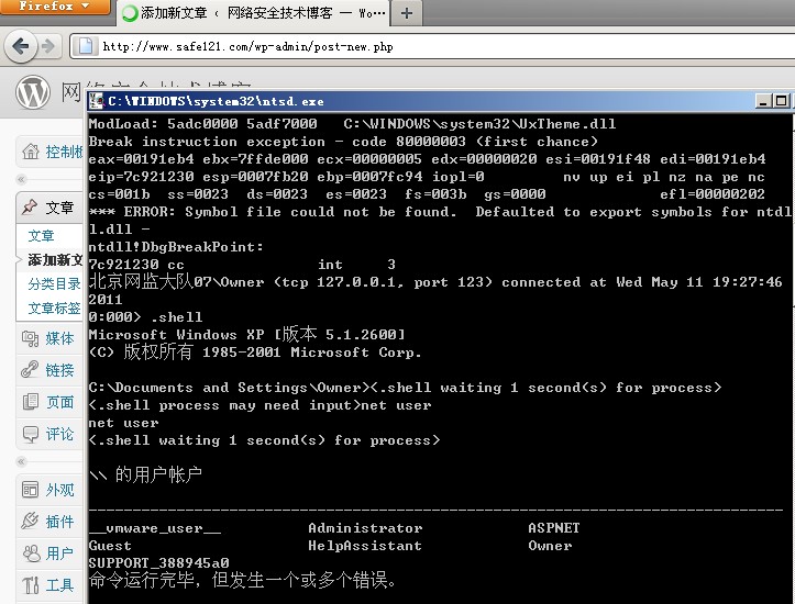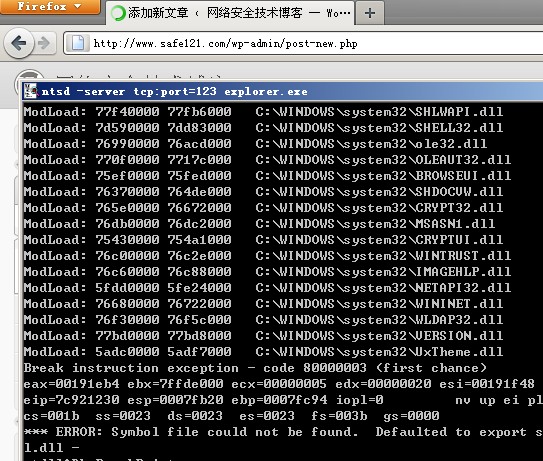所谓“微软的’后门’”就是ntsd的远程调试功能