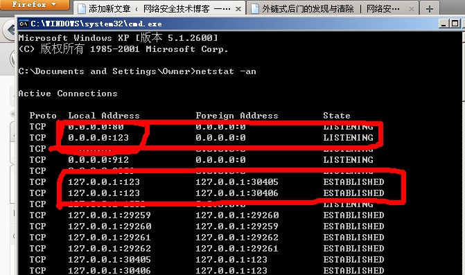 同样需要开放端口,如果通过netstat -an查看 同样会有异常的连接
