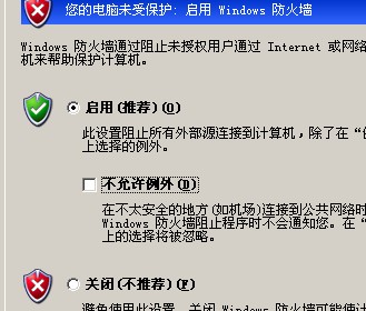 选择开启,并允许例外