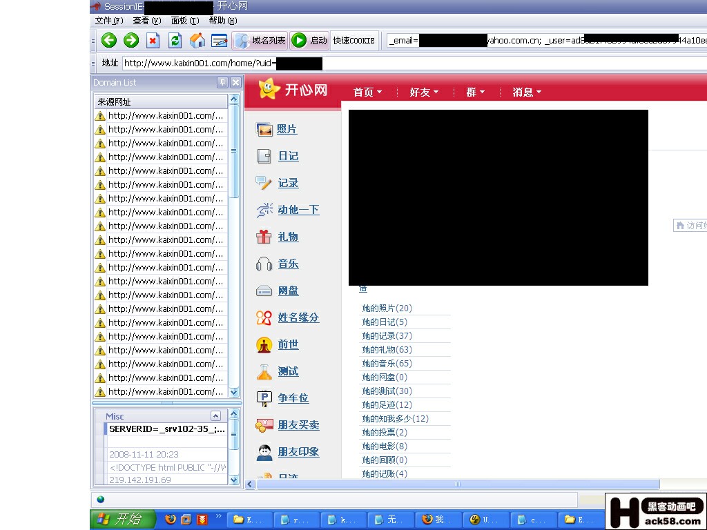 开心网的COOKIE(其实是Session)格式如下: