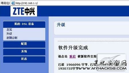”,在出现的页面里点下“重启”,90秒后,设备重启完成。再等上2~3分钟的时间,