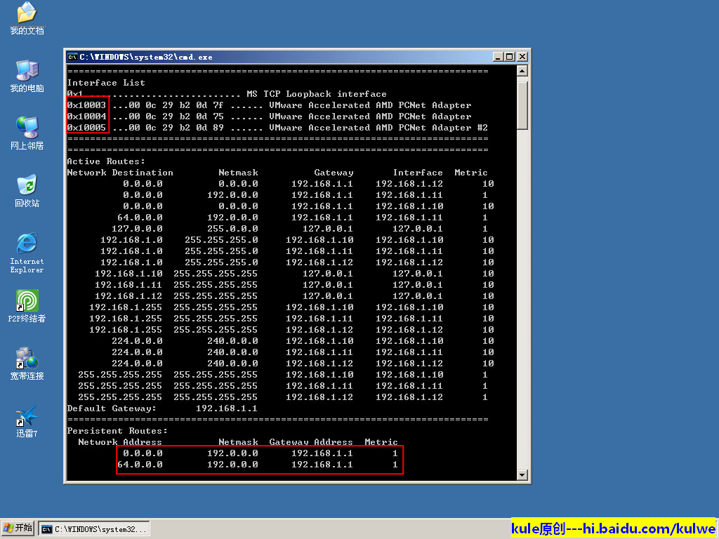 2.设置静态路由,让连接分布到2个网卡上。静态路由表设置(把整个互联网IP分成了4个子网)