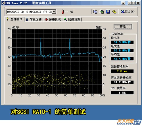 鉴于大家的要求,我用HDTUNE进行了一次简单的磁盘测试。下面是测试结果: