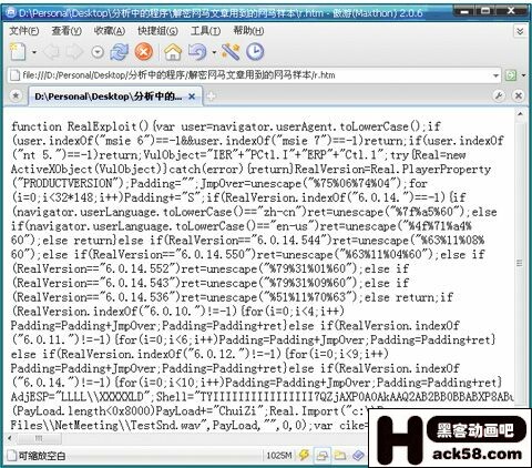 而无法显示网页代码的。就到IE缓存中寻找被保存到本地的网马文件,用我提供的办法应该可以解开绝大部分的网马了,