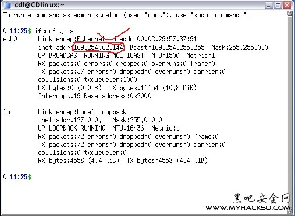 发现有了信号,现在开始菜单—终端——输入ifconfig –a