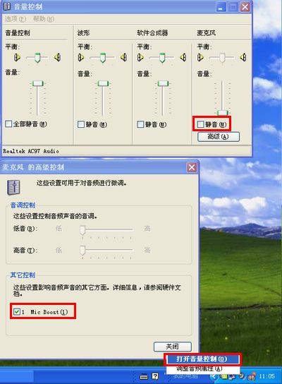 5,、如果以上设置无效,请检查麦克风是否被静音(部分带有开关)或已损坏。下图为系统中设置麦克风是否静音的示例。