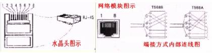 交换机或集线器到网络模块之间的网线接线方法是按市线EIA/TIA 568标准进行,但因其有A、 B两种端接方式(IBM公司的产品通常用端接方式A,AAT&T公司的产品通常用端接方式B,端接方式的主要区别在下述的T568A模块和T568B模块的内部固定联线方式)。两种端接方式所对应的接线顺序如下表1所示: