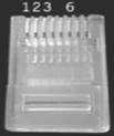 虽然从集线器或交换机到工作站的网线可以是不经任何跳线的直连线,但为了保证网络的高性能,最好同一网络采取同一种端接方式,包括信息模块和网线水晶头。水晶头和信息模块各引脚的对应顺序如图6的左、右图所示。因为在信息模块各线槽中都有相应的颜色标注,只需要选择相应的端接方式,然后按模块上的颜色标注把相应的芯线卡入相应的线槽中即可,不必去记表1所示的颜色顺序。