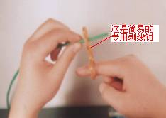 第1步:用双绞线网线钳(当然也可以用其它剪线工具)把五类双绞线的一端剪齐(最好先剪一段符合布线长度要求的网线),然后把剪齐的一端插入到网线钳用于剥线的缺口中,注意网线不能弯,直插进去,直到顶住网线钳后面的挡位,稍微握紧压线钳慢慢旋转一圈(无需担心会损坏网线里面芯线的包皮,因为剥线的两刀片之间留有一定距离,这距离通常就是里面4对芯线的直径),让刀口划开双绞线的保护胶皮,拔下胶皮。如图1所示。当然也可使用专门的剥线工具来剥皮线。