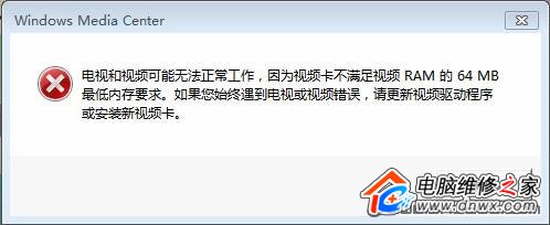 接下来笔者谈谈在试用驱动时发现的几个问题。一是Windows Media Center(简称WMC)程序无法启动。笔者在测试中发现要启动WMC,显卡必须拥有64MB以上显存,否则系统会提示“电视和视频可能无法正常工作,因为视频卡不能满足RAM的64MB最低内存要求”(如图)。二是Aero特效。根据在不同驱动程序下的多次测试的结果,早期的显卡虽然能够强行打开Aero特效,但是无法正常显示,最多只能看到鼠标移动,桌面上所有内容都无法显示,但是非Aero主题还是能够正常使用。