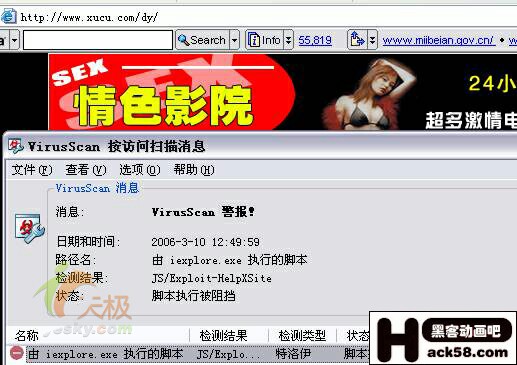 这些黄****站不但对青少年的身心健康威胁极大,而且还经常会让一些浏览正规网页的朋友无意中招,比如IE首页、标题被改得面目全非;一打开IE浏览器,就直接连接到国外色情网站;进入很普通的网站,也弹出一大堆乱七八糟的国外色情窗口……。尤其是正在和同事谈工作,对着屏幕讲解的时候,遇到这样的事情,甭提有多尴尬了。更恐怖的是,有的拨号上网的朋友无意中点击了这些的内容,系统就被自动植入一个程序,自动拨打国际长途电话连接到该网站,到了月底,拿着高额的国际长途话费单发呆。这样的事情不断见诸报端,已经屡见不鲜。黄****站已经恶意网页、木马、病毒以及各类攻击的滋生地。下面就一起来看看黄****站都会带来哪些安全威胁。一、黄****站——恶意网页、垃圾邮件、病毒的温床