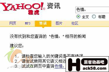 (1)YAHO其搜索引擎没有找到与“色情,”相符的新闻或网站。