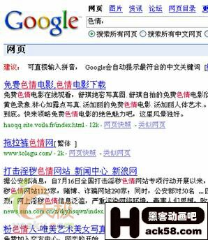 (5)Google:除了百度,网民们最喜欢用的就是它了,可是在搜索页面上第一页就有“色情”电影网站,而且相关链接都可以访问,这种结果还是让网民们大失所望。