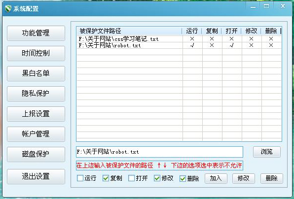 禁止运行、禁止复制、禁止打开、禁止修改、禁止删除。